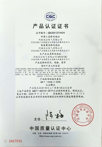 CQC--HCZM3塑殼斷路器產(chǎn)品認(rèn)證證書(shū)