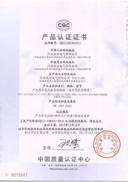 CQC--VCZ-40.5產(chǎn)品認(rèn)證證書(shū)
