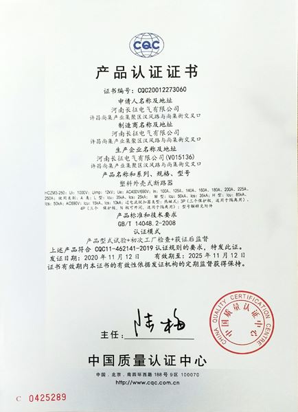 CQC--HCZM3塑殼斷路器產(chǎn)品認證證書
