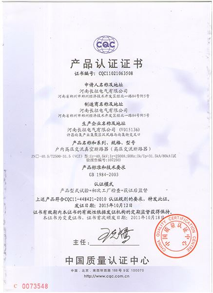 CQC--VCZ-12產(chǎn)品認證證書