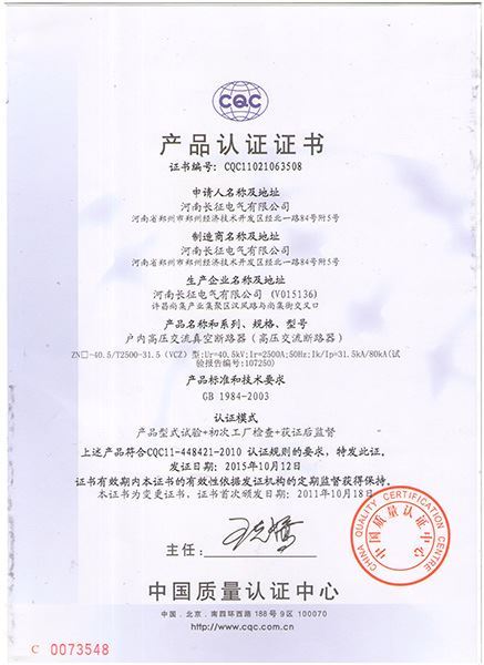CQC--VCZ-40.5產(chǎn)品認(rèn)證證書
