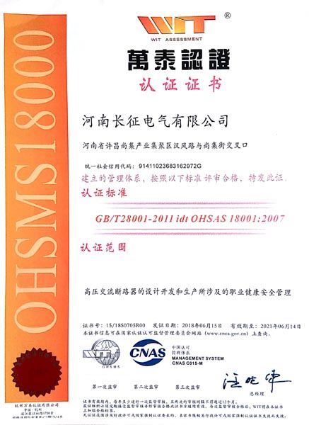 OHSAS18001職業(yè)健康安全管理體系認(rèn)證證書