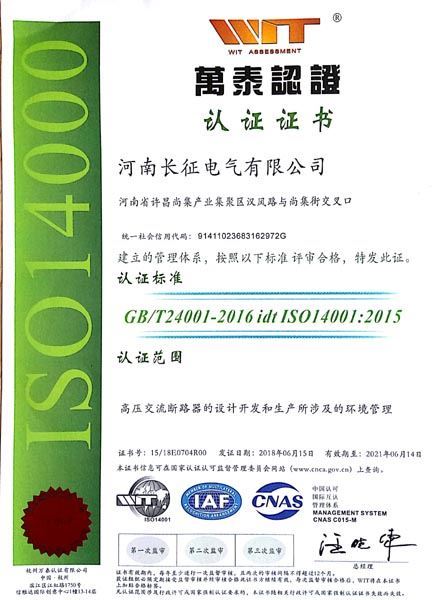 ISO14001環(huán)境管理體系認(rèn)證證書